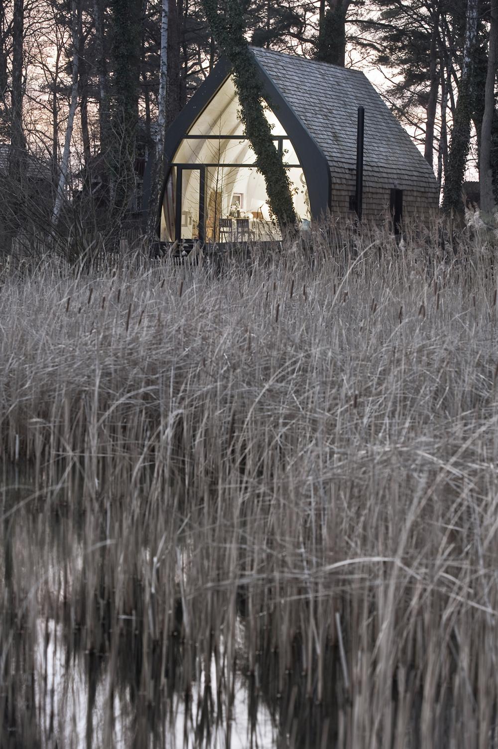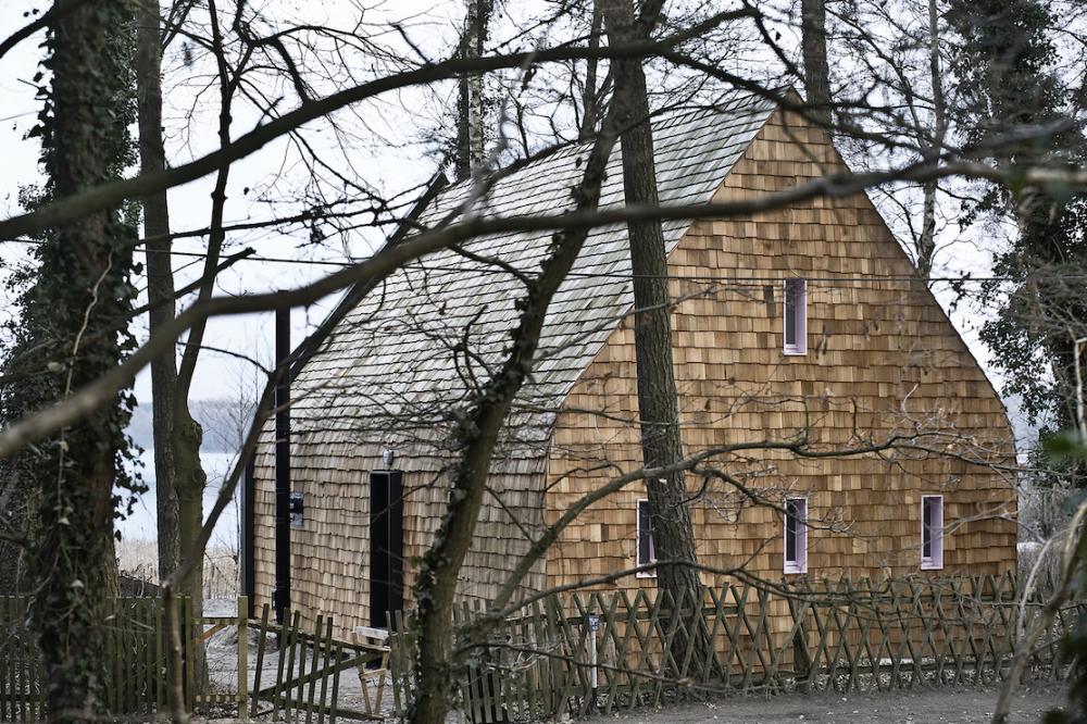 2008-ban, alig két éve valósult meg a Pfeiffer Architekten terve, és épült fel az a közel 80 négyzetméter alapterületű ház, amelynek deklarált célja az volt, hogy elrejtőzzön, belesimuljon a vízparti helyszín növényvilágába, színeibe, formáiba, szellemiségébe. A(z) (érintetlen) természet dominanciája nyilvánvaló módon mutatkozik meg, ha erre az épületre pillantunk; mind a formavilág, mind az anyaghasználat arról a szándékról tanúskodik, hogy a tervezőiroda (szinkronban a megrendelővel) fontos szempontnak tartotta a környezeti elemek elsődlegességét. Két elem uralkodott a belső térrendezés tekintetében: az elrejtés és a láttatás.