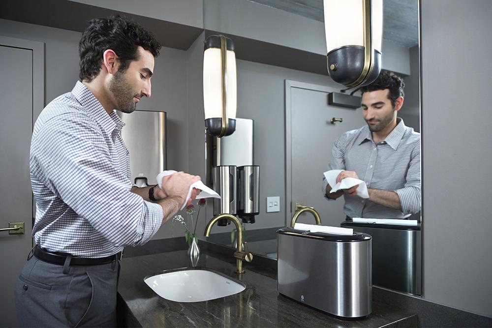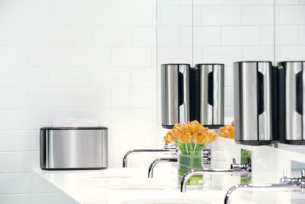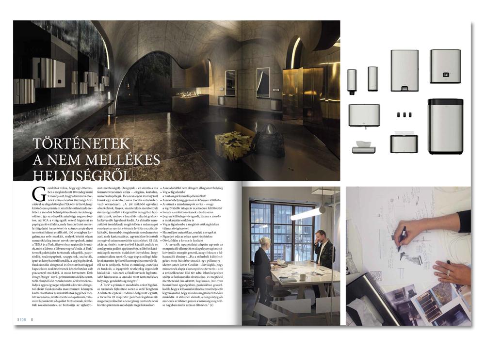 A most bevezetett Tork Image Design™ nevű, prémium mosdókba szánt, több elemből álló rozsdamentes acél termékcsaládjuk egyes egységei teljesítik a kortárs designtól elvárt funkcionális maximumot: könnyen karbantarthatók és utántölthetők (egyebek mellett szenzoros, érintésmentes adagolásúak, valamint laponkénti adagolást biztosítanak, felületük rozsdamentes, ez biztosítja az ujjlenyomat-mentességet). Designjuk – ez szintén a ma formatervezésének alfája –, elegáns, kortalan, univerzális jellegű. De a rész-egész viszonyáról lássuk egy szakértő, Lovas Cecília enteriőrtervező véleményét: „A jól működő egészhez a burkolatok, fények, szaniterek és szerelvények összessége mellett a kiegészítők is nagyban hozzájárulnak, melyre a hazai kivitelezési gyakorlat kevesebb figyelmet fordít. Az aktuális nemzetközi trendeknek megfelelően a műanyagot reményeim szerint e téren is leváltja a szofisztikáltabb, finomabb megjelenésű rozsdamentes acél, mely karizmatikus, ugyanakkor letisztult anyagával számos mosdótér sajátja lehet. Jól illik akár az öntött márványból készült pultok és a műgyanta padlók együtteséhez, a fából és kerámialapok mentén kialakított helyekhez, hogy a minimalista terekről, vagy épp a csillogó felületek mentén építkező kozmopolita enteriőrökről ne is szóljunk. Stílus és minőség, esztétika és funkció, a legapróbb részletekig átgondolt kialakítás – tán ezek a fürdőtervezés legfontosabb hívószavai, a »mosdó mint nem mellékes helyiség« gondolatiság mögött.”