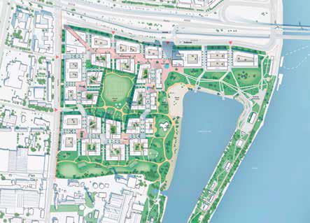 A terv kulcspontja igazából nem a magas épület. Hanem éppen fordítva, ugyanis egy magasház megépítésének több sarokköve van, amikből logikusan következhet akár egy magasház megépítése is. Dánia valóban kicsi területű ország, ezért nagyok a tapasztalataink a nagy sűrűségű, ugyanakkor élhető és természetközeli lakókörnyezet megalkotásában. Sok tapasztalatunk van abban is, hogy egy-egy intenzív fejlesztés az egész városra pozitív hatással lehet, nem csak a közvetlen szomszédságára. Mi itt egy olyan városrészt képzeltünk el, ahol jó élni, ahol kiegyensúlyozottak a szomszédsági viszonyok, organikusan egymásra épülnek a különféle funkciók és valódi városi működést tapasztalunk. A célunk tehát nem egy egyedülálló építmény létrehozása, hanem egy élhető, vízparti városrész megalkotása volt. Amikor ezt a szituációt elemeztük, majd kiértékeltük az eredményeket, akkor éreztük annak a fontosságát, hogy a beépítés kifusson a Dombóvári útig, vagyis egy nagy közösségi infrastruktúrával érintkezzen. Ez teremtette meg végül azt a helyzetet, amibe akár egy magasház is beilleszthető.