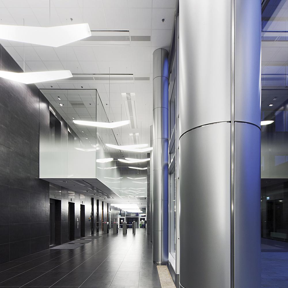 A homlokzatok tagolása az irodaházaknál gyakori – a pillérek síkjában megszakított – szalagablakos rendszert követi, a földszinten és a visszahúzott legfelső emeleten nagy üvegfelületekkel. A klasszikus méltóságot idéző, szimmetrikus tömegformát a részletek teszik változatossá: a főbejárat a középtengely helyett a Kassák Lajos utcai homlokzaton nyílik – ezt az itt elhelyezett kávézóval együtt jelzésszerű árkádsor emeli ki, amely a Lőportár utcai oldalra is átfordul. Az egyes homlokzati mezőket finom síkugrások keretezik, eltérő árnyalatú burkolattal. A sötétszürkés-zöldes tónusú felületeket zárterkélyhez hasonlóan előreugró, sárga dobozok élénkítik – ezek sajátossága, hogy csupán a rövidebb oldalakon rendelkeznek megnyitásokkal.