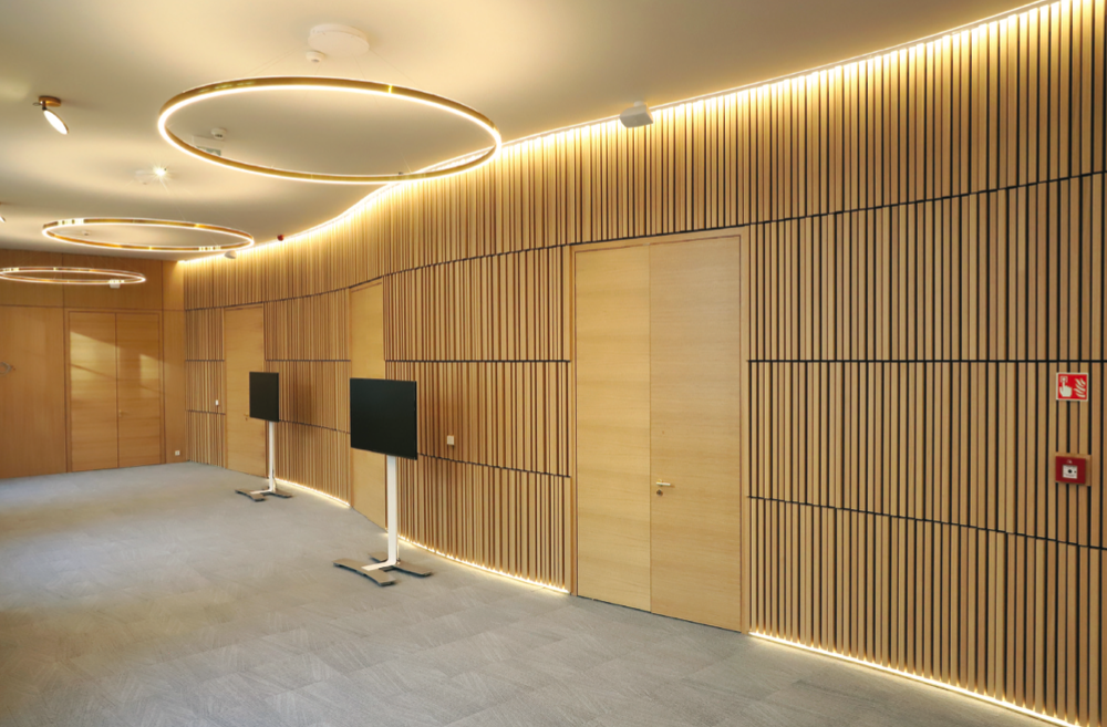 A Hörmann Hungária Kft. közel 700 termékét építették be, melyekben megtalálhatóak voltak a cég jól bevált acélajtói, tűz- és füstgátló megoldásai T30, T60 és T90- es kivitelekben. Emellett – a megrendelői igényeknek eleget téve – extra minőségű, a piacon a legmagasabb prémium kategóriát képviselő Schörghuber fatokos faajtók is beépítésre kerültek. A Schörghuber ajtók 1962 óta jelentik a magas minőséget: a cég elsőként mutatta be a faanyagból készült tűzálló ajtót, mellyel forradalmasították az ipart. A Hörmann Schörghuber ajtók arra összpontosítanak, hogy a funkcionalitást és a design egy ajtóban egyesítsék, magas minőséggel párosítva. Erősségük abban rejlik, hogy egy ajtókészletben egyesülnek a különböző funkciók, mint például a tűzálló, füstmentes és akusztikai jellemzők. Számos jóváhagyás, vizsgálati jelentés és tanúsítvány garantálja a maximális biztonságot és védelmet.