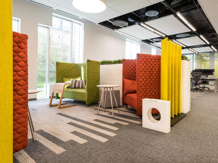 A „shared desk” rendszerben megosztott munkaállomások, a telefonálásra, koncentrált munkára alkalmas egy-két fős fókuszhelyiségek, a belső meetingekre használható kisebb szobák, valamint az akár nemzetközi egyeztetésekre alkalmas nagy tárgyalók mind ezt a célt szolgálják. Lényeges volt az is, hogy a térkialakítás nemcsak igényes és ízléses, hanem stílusában időtálló és természetközeli is legyen. Az irodába ennek megfelelően főként pasztell árnyalatok, színes és szövet falfelületek kerültek. A természetközeli koncepciót képviselik az Interface biofília alapú modulszőnyegei is.