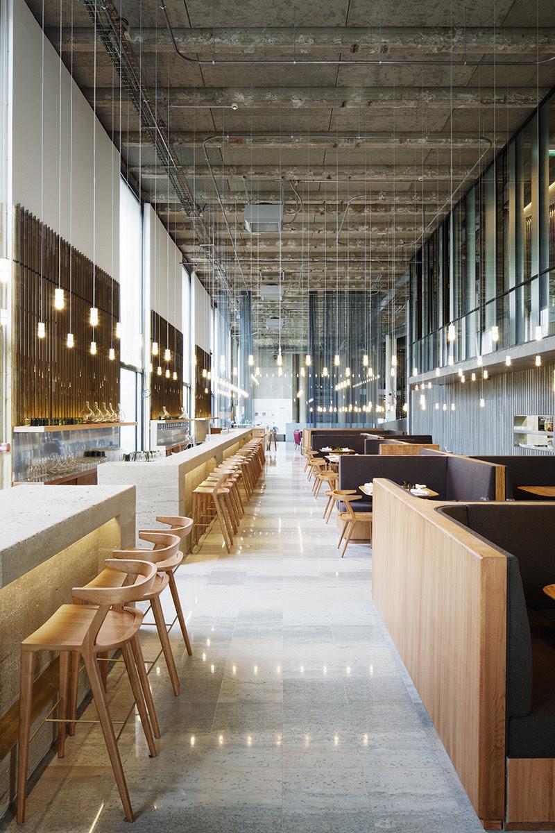 Through three chromatic intensities, the architecture of the restaurant proposes a gradation of experiences, ranging from the most porous to the most intimate area.