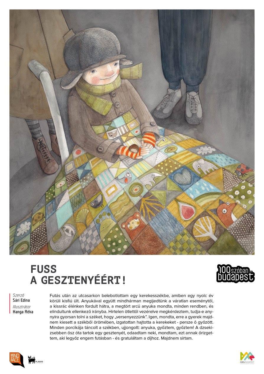 A CAFe Budapest Kortárs Művészeti Fesztivál keretében hirdették ki 2016. október 21-én a 100 szóban Budapest pályázat 12 legjobb pályaművét. Az első helyezést elért pályamű a történetíró és egy kerekesszékes kisfiú szívmelengető találkozását meséli el. A beérkezett pályázatok közül a zsűri – Winkler Nóra, Térey János, Nagy Dániel Viktor – Sári Edina Fuss a gesztenyéért! című művét találta a legjobbnak. A megosztott második helyen Balogh-Szabó Kitti …kisEBb, valamint Ferdinánd Zoltán A világ legjobb kurvája című története, míg a harmadik helyen Soltész Béla Corvin-negyed című írása végzett. Az első három helyezett 150 000 Ft összdíjazásban részesült (I. helyezett: 65 000 Ft, II. helyezett: 30 000 Ft, III. helyezett: 25 000 Ft.)