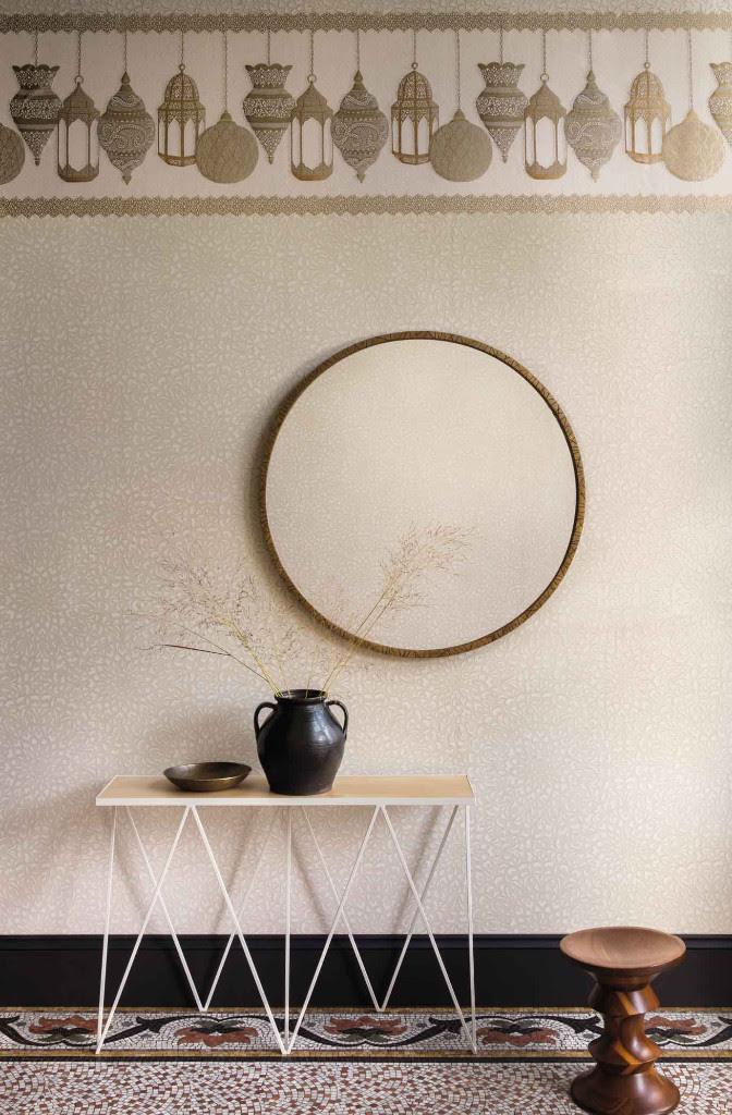 A marokkói lámpásokat, buja növényzetet, részletgazdag mozaikokat ábrázoló tapéták főképp a szürke, a homokszín és a barna árnyalataiban kaphatók, de egyes változataik élénkebb színekkel is kiegészülnek.