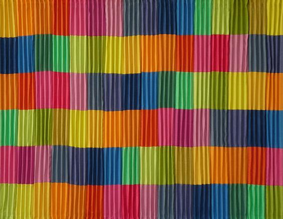 Regős Annát pályája kezdete óta foglalkoztatják a geometrikus minták. Egy-egy minta kiemelésével, felnagyításával, különböző speciális technikák alkalmazásával, hoz létre újszerű anyagstruktúrákat.